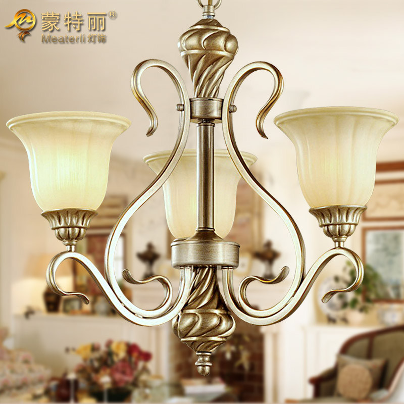 300W European Metal and Glass Chandelier With Lamp Shades 3 Light Quick details: Material: Metal & glass Size: Lamp diameter: 52CM, lamp height: 62CM, adjustable chain length: 28CM Process way: Hot bending, soldering, hand-painted, baking finish by hand-craft Color: Silver ground with gold painting, Custom various colors by orders Attachment: Installation gloves, installation drawing manual Packing: Individual packing, bubble polybag + polyfoam + standard export carton,