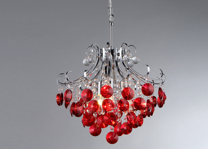 Candeliere moderno del cromo di 3 luci che accende cristallo rosso per alloggiare