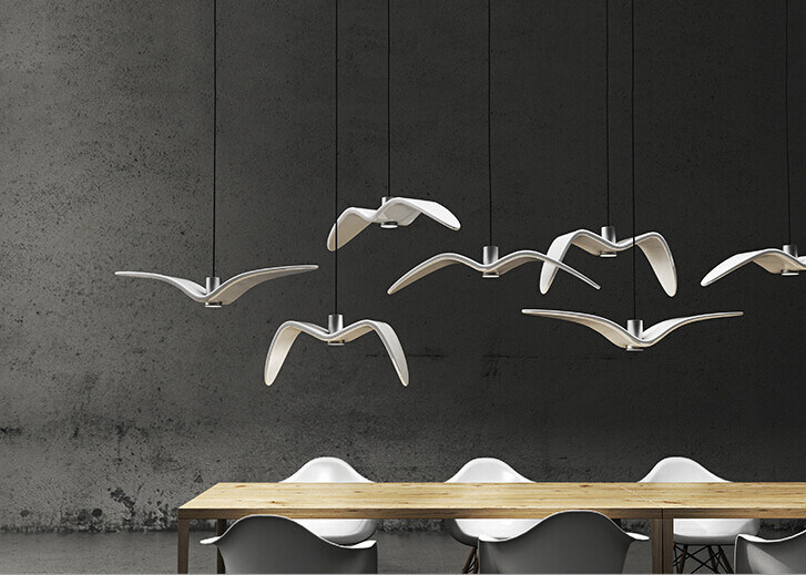Piękny Nightbirds Zawieszenie Czysta Oświetlenie Oświetlenie LED Białe akrylowe Ptaki Shape