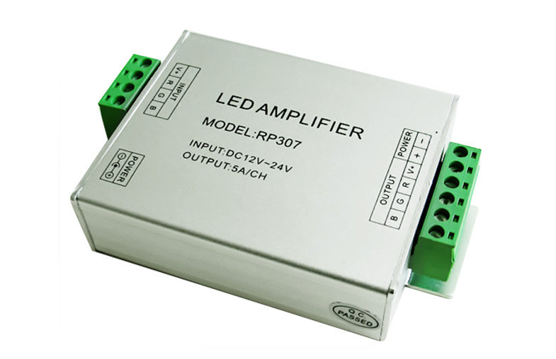Lighting Fixture Parts , 12V - 24V 3 Channels RGB LED Amplifier Amplifier for RGB controller, 144~288W, 3 CH, 4A Quick Detail: Amplifier for RGB controller, used for expanding its capacity of load. 144~288W 3 Channels 4A Model Number :AFCG151004 Description: Amplifier for RGB controller. Features: 144~288W 3 Channels 4A. Specifications: Output Wattage(W) Input Voltage(V DC) Output Size (LxWxH, mm) Weight (g) 144~288 12-24 4A/CH*3 76x64x24 85 Applications: This Product is in